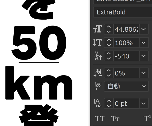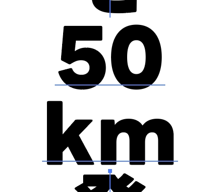 気になるのはは50の文字詰めと、50とkmの隙間、さらには文字の大きさです。
